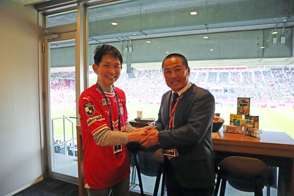 また、試合前にはセレッソ大阪の森島社長、田中駿汰選手とご挨拶をしました