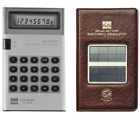 初代電卓発売から12年後の1976年、太陽電池を搭載したモデルが発売されました。そのサイズは幅65mm×奥行109mm×厚さ9.5mmと、現在の電卓と同じ水準です。わずか12年間でこれほどの大進化を遂げられたのは、LSI(大規模集積回路)の搭載や消費電力を抑えた液晶表示など、新技術を積極的に採用したから。特に低消費電力化を追求し、日用品に太陽電池を搭載できたことは、今日の太陽光発電技術の発展のきっかけとなりました。