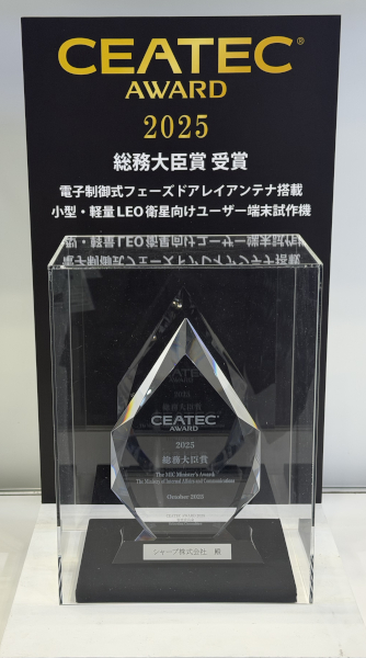 今回は、スマートフォンの開発で培った通信技術、小型・軽量化技術を活用し、開発を進めているLEO衛星通信ユーザーターミナルも出展しました。LEO衛星通信ユーザーターミナルはCEATEC AWARD 2025 総務大臣賞受賞を受賞し、期待の商材です。