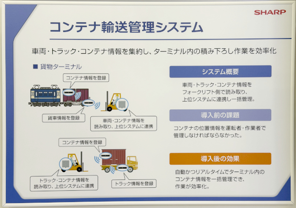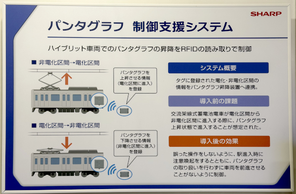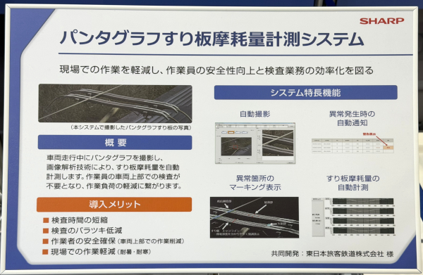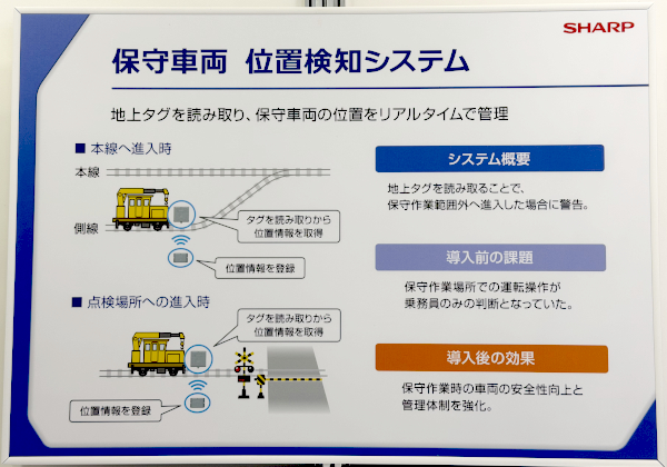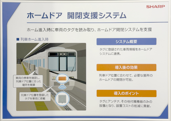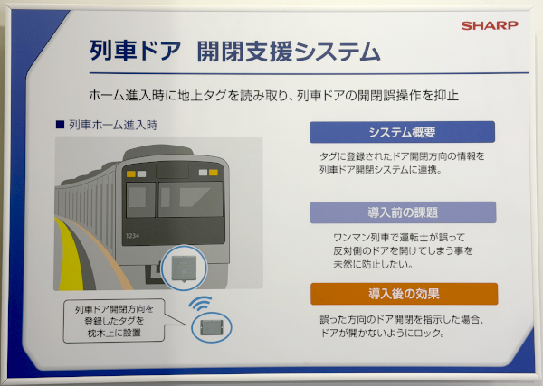 シャープのブースでは、当社がモノづくり企業として長年培ってきた「RFID機器」「カメラ」「LED照明」「プラズマクラスター発生機」「各種分析システム」などを組み合わせたソリューションを中心に、鉄道関係で今後、益々重要となってくる自動化・省人化に関する商材や安全で快適な鉄道車両の運行を支援するシステムを展示しています。初出展ということで、これまで接点を持てなかった企業様に対して、各種商材やソリューションの説明ができました。このことが新たなお客様の開拓につながることを期待しております。