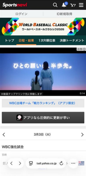 ~3月18日(水)(予定)17:53(予定)19:00(予定)WBC news everyコーナー枠