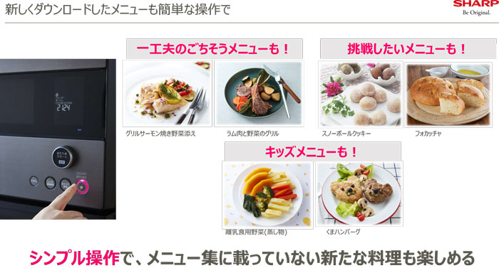 また、「COCORO KITCHEN」キーを押すと、「COCORO KITCHEN」レシピサービスからダウンロードしたメニューが利用できます。