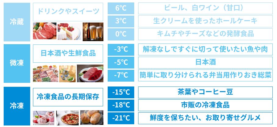 ■ 冷凍・微凍・冷蔵3モード(9段階温度切替)