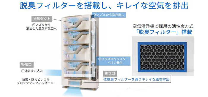 3. 室内へのニオイ漏れを抑制する脱臭フィルターを搭載