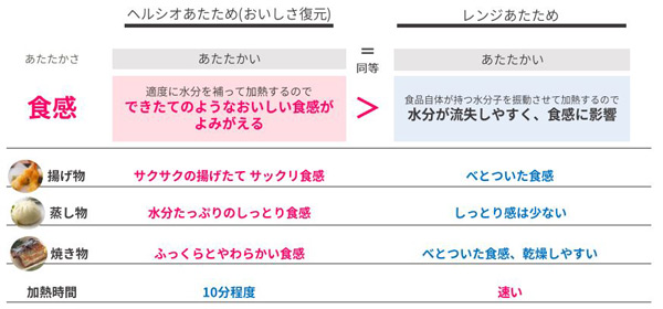 ■冷めたおかずや惣菜をできたてのような食感に復元する「ヘルシオあたため(おいしさ復元)」