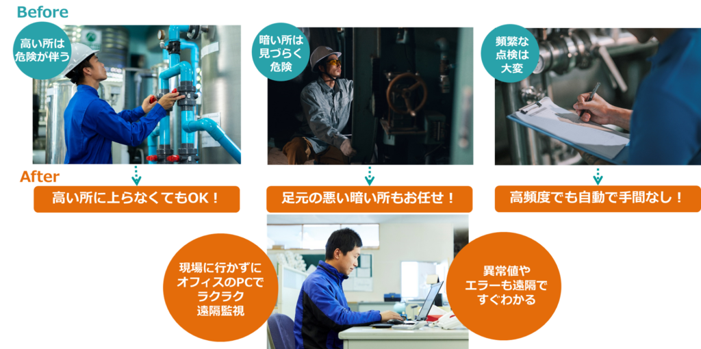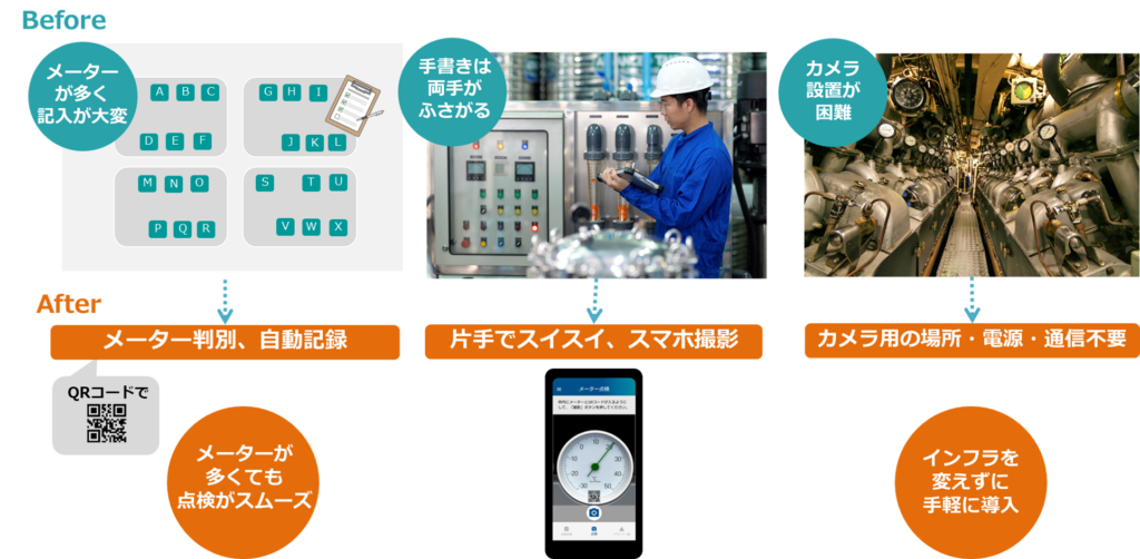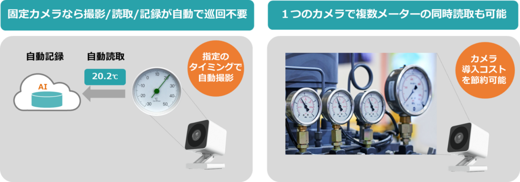 固定カメラの自動読み取りにより巡回業務を大幅に削減できますが、すべてのメーターに固定カメラを設置するのは、コストや設置環境の問題で困難との現場の声が多くあります。