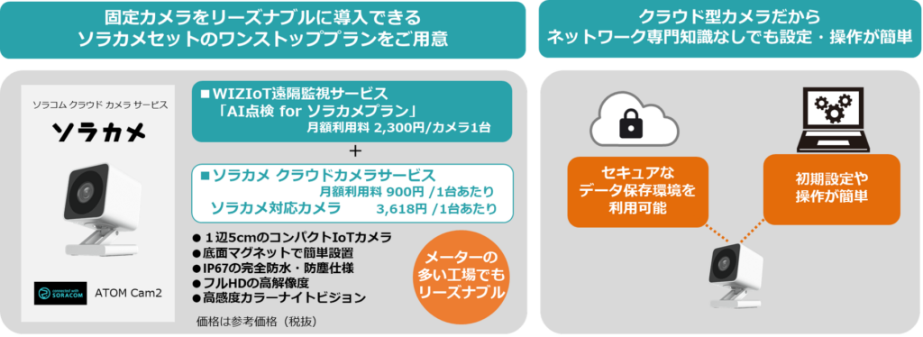 ●さらにリーズナブルに導入でき、設定も簡単なクラウド型カメラ「ソラカメ」に対応