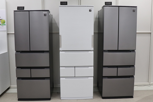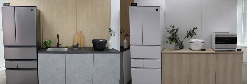 ※3 当社従来機種550Lクラス(2019年製<SJ-GA55E>、奥行74.5cm)、従来機種500Lクラス(2023年製<SJ-GK50K>、奥行68.4cm)。