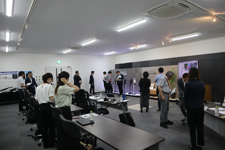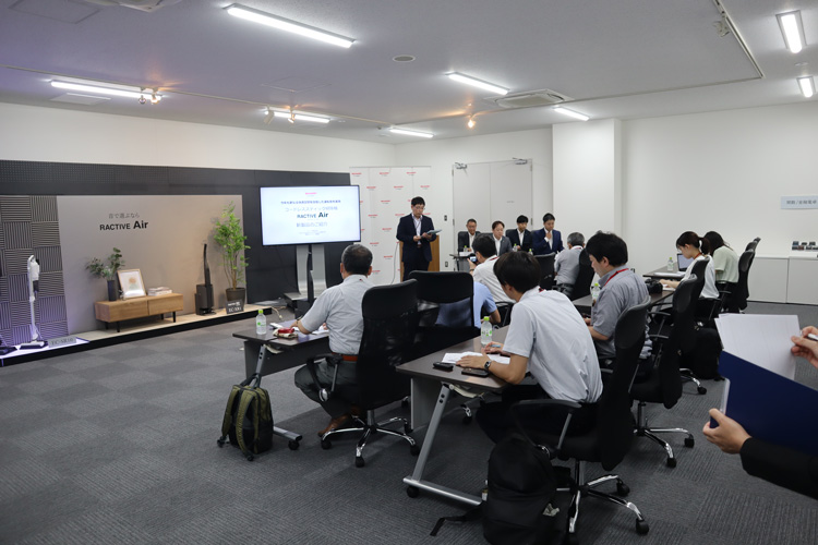 7月22日(月)、ステーションタイプ コードレススティック掃除機「RACTIVE Air STATION」<EC-XR1>、サイクロン式のコードレススティック掃除機「RACTIVE Air POWER」<EC-SR10><EC-PR10>および「RACTIVE Air」<EC-AR10>、紙パック式のコードレススティック掃除機「RACTIVE Air」<EC-KR2>のメディア向け発表会を八尾事業所で開催しました。発表に先立ち、7月17日(水)には東京ビルで事前説明会を実施しました。