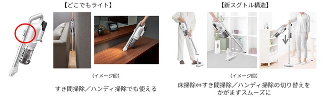 また、スティックをステーションに戻すだけで自動的にごみを収集し、手を汚さずに紙パックを交換できる構造を採用し、抗菌※1加工が施されたダストカップは丸ごと水洗い可能で、清潔に保てるようにしました。