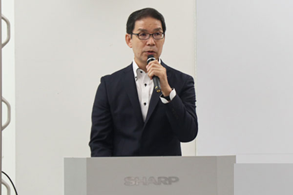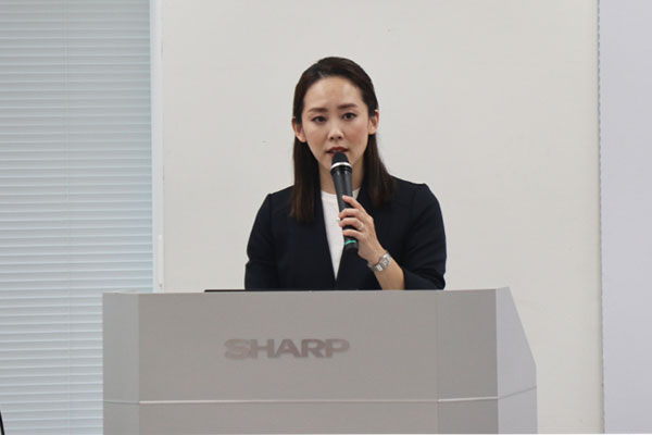 最初に、SAS事業本部 国内キッチン事業部長の池上さんより、2015 年の初号機発売から 10 年目を迎える「ホットクック」は、AIoT 化やお手入れ性能の向上などさまざまな進化を遂げたことを説明しました。圧倒的なカンタンさとおいしさが評価され本年6月に累計出荷台数 65 万台を達成し、近年中に100 万台達成を目指すことを表明しました。また、共働き世帯の増加、食品ロス問題などの社会課題に対し、これまで「ヘルシオシリーズ」で訴求してきた「おいしさ × 健康 × 簡単・ 便利」をコンセプトに新製品の開発を進めることで 、課題解決に貢献していくことを表明。さらに、「ヘルシオシリーズ 」の魅力を体感いただくため 、本年10月に期間限定カフェを東京で開催することも紹介しました。