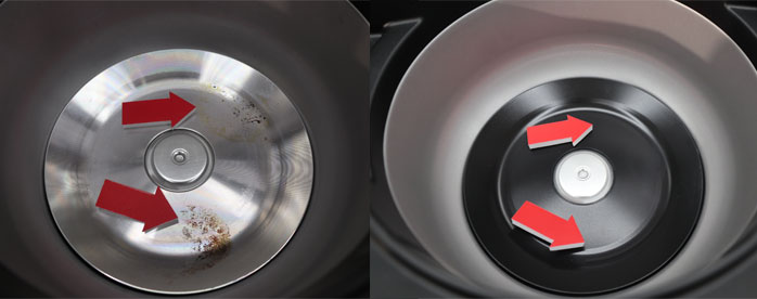 ■本体底の熱板(内鍋との接触部)に、汚れが取れやすい「らっクリーンコート」を新採用