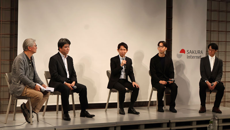 最後に、株式会社クロステック・マネジメント 取締役 小笠原 治氏、当社 専務執行役員CTOの種谷さん、研究開発本部長の伊藤さん、Jizai株式会社 代表取締役CEO 石川 佑樹氏、 さくらインターネット株式会社 AI事業推進室 室長 角 俊和氏の5名による、①「生成AIはどう進化するか」②「生成AIで日本は復権するか」③「AI開発現場の課題は何か」④「Enable AI Foundryへの期待」の4テーマでのトークセッションを行いました。