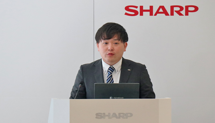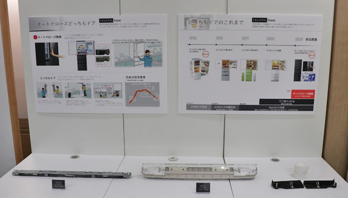続いて、同 商品企画部 主任の林さんより、新製品の特長を説明。「FiT63シリーズ」では、「COCORO HOME AI」に食品の保存方法などを相談できること、野菜の14日間の鮮度保持を実現※2したこと、「パラパラ冷凍」・「味しみ冷凍」モードを新たに追加したことを訴求しました。「オートクローズどっちもドア」搭載モデルでは、当社独自の「どっちもドア」の利点を改めて強調しつつ、新機構のオートクローズについてアピールしました。