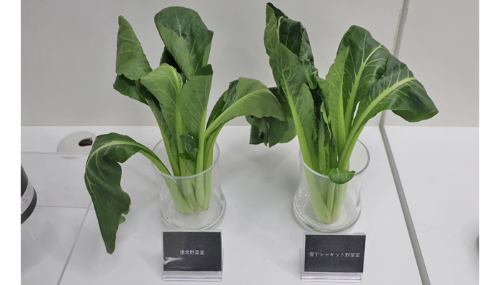 通常野菜室で保存した野菜(左)と「雪下シャキット野菜室」で保存した野菜の比較