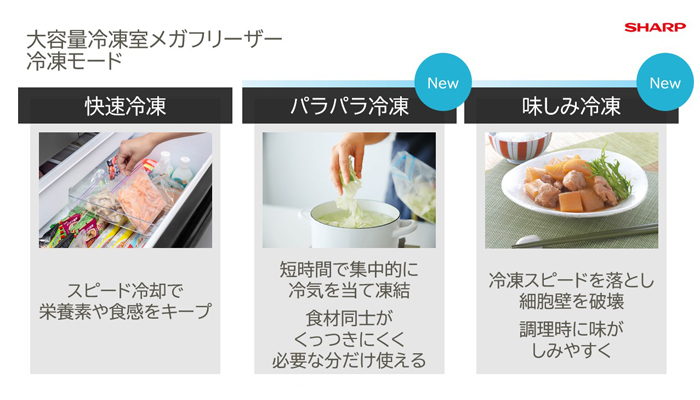 ■食材や用途に応じて使い分けられる「パラパラ冷凍」「味しみ冷凍」モードを追加