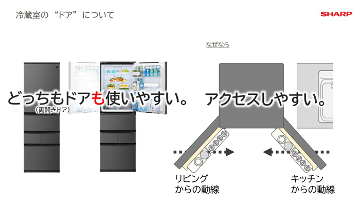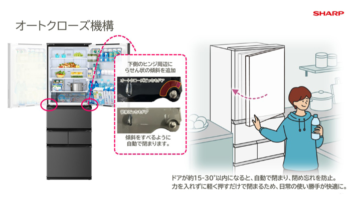 ■新たにオートクローズ機構を搭載し、進化した「どっちもドア」<SJ-XW46R/XW41R/PW37R/PW37R>