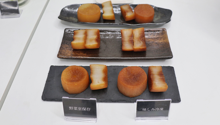野菜室で保存した大根の煮物(左)と味しみ冷凍した大根の煮物(右)の比較