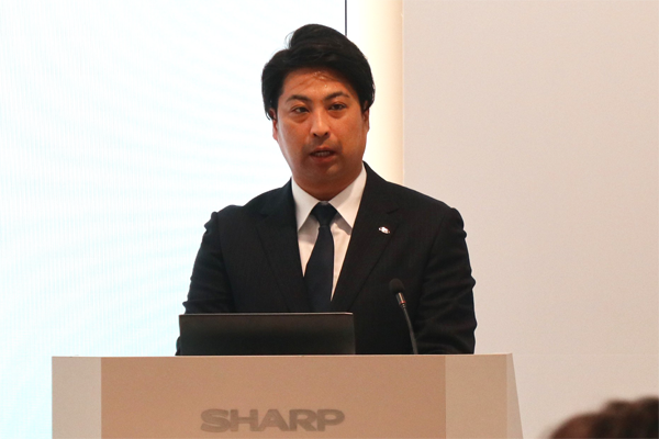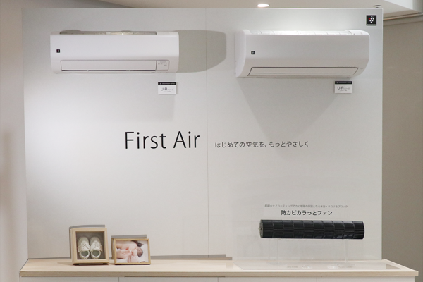 冒頭、SAS事業本部 空調事業部長の増尾さんより、エアコンの市場動向と清潔性や省エネ性に対するユーザーニーズが高まっている背景を説明しました。加えて、「First Air」という開発コンセプトのもと、独自の防カビ技術とプラズマクラスターにより、清潔性へのニーズに対応していくことを表明しました。