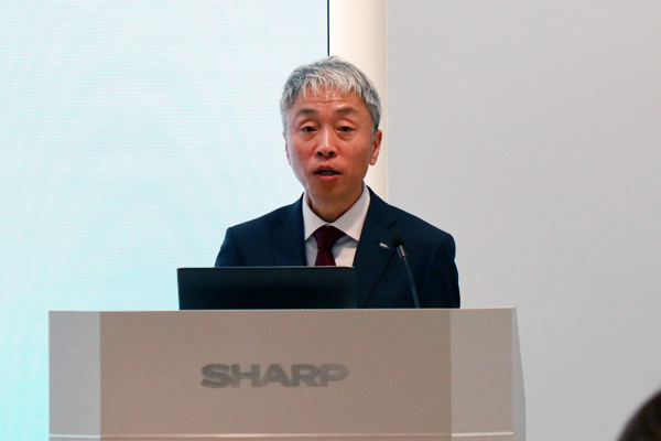 冒頭、SAS事業本部 空調事業部長の増尾さんより、エアコンの市場動向と清潔性や省エネ性に対するユーザーニーズが高まっている背景を説明しました。加えて、「First Air」という開発コンセプトのもと、独自の防カビ技術とプラズマクラスターにより、清潔性へのニーズに対応していくことを表明しました。