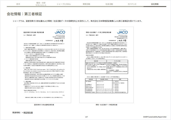 ■サステナビリティレポート2022 ダウンロードページhttps://corporate.jp.sharp/eco/report/