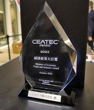 右:「CEATEC AWARD 2022」『経済産業大臣賞』の楯を持つ