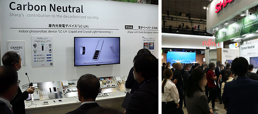 開催前日(10月17日)には、「CEATEC 2022」の出展品を対象に、出展者から応募のあったテーマの中から、「CEATEC AWARD 2022 審査委員会」が学術的・技術的観点、市場性や将来性などの視点でイノベーション性が高く優れている技術・製品・サービスなどを表彰する「CEATEC AWARD 2022」の発表があり、シャープが出展する屋内光発電デバイス『LC-LH(Liquid and Crystal Light Harvesting)』が、『経済産業大臣賞』を受賞しました。
