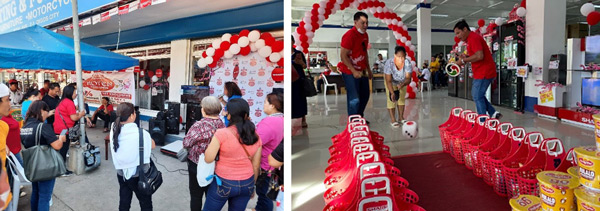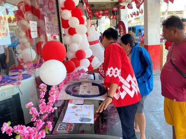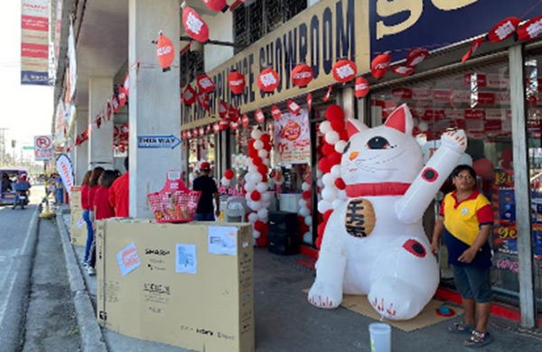フィリピンでは、中国や韓国メーカーによる価格攻勢に販売苦戦しており、競合他社と差別化するために、 “招き猫”や“桜の花・垂れ幕・旗”などを華やかに使った展示、“サイコロゲーム”、 “はっぴ”着用など、日本式イベントを開催し、お客様に大変好評をいただいております。