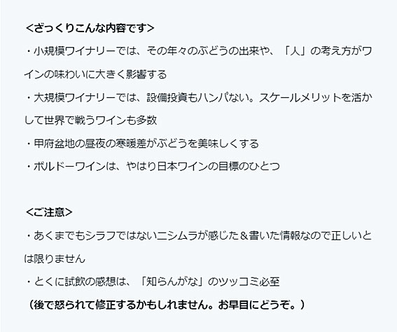 この酔いどれ気分と、日本ワインのあれこれを知った興奮がさめやらぬうちに、ワイナリー見学レポートを始めたいと思います。