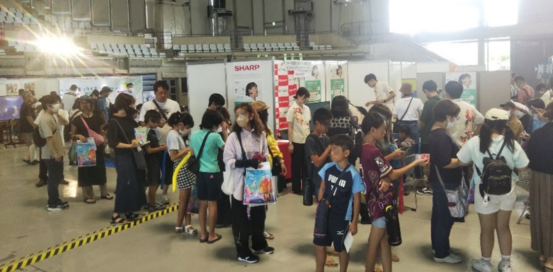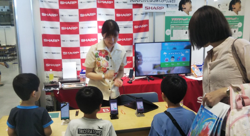 自然科学や最新テクノロジーの世界を体験しながら学べるイベント「夏休みこども自由研究」(琉球朝日放送主催)が、8月12日(土)と13日(日)の2日間、沖縄コンベンションセンターで、4年ぶりにリアルで開催されました。このイベントで、沖縄シャープ電機株式会社とSmart Appliances and Solutions事業本部 PCI・HC事業部が協力し、咀嚼計bitescanを活用した“かむかむチェックで「よくかみマイスター」になろう!”と題する体験教室を実施しました。