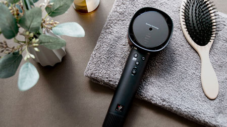 そう言えばドライヤーで髪を乾かすときに手櫛で髪を持ち上げて乾かしていることを思い出した。髪を押し分けて立体的に回り込む風で乾かすと時短でしかも髪へのダメージも少なく済むことが分かる。この、手を使うような押し分けに相当する技術を4点の吹き出しを持つ構造に置き換えている。このアイデアは、サロンテクニックのドレープフローに由来するとのことで、2点吹き出しの弱点を改良して縦横の方向性を問わない使い方を実現化しているところが全く新しい。また、髪との距離をセンシングして熱によるダメージを抑制する機能やプラズマクラスター機能などの髪への美容性も考えられている。子供用の熱や風量を抑えたモード、頭皮モードなどもLEDライトで直感的に認識できる配慮もされている。成熟家電と言われてきたドライヤージャンルに、日本初の流体力学から速乾のあり方を考えた美しく革新的な製品が誕生したとして評価された。