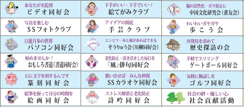 本部には下記のようにいろいろな同好会があります。各支部独自の同好会もありますので、ぜひ、ご参加ください。