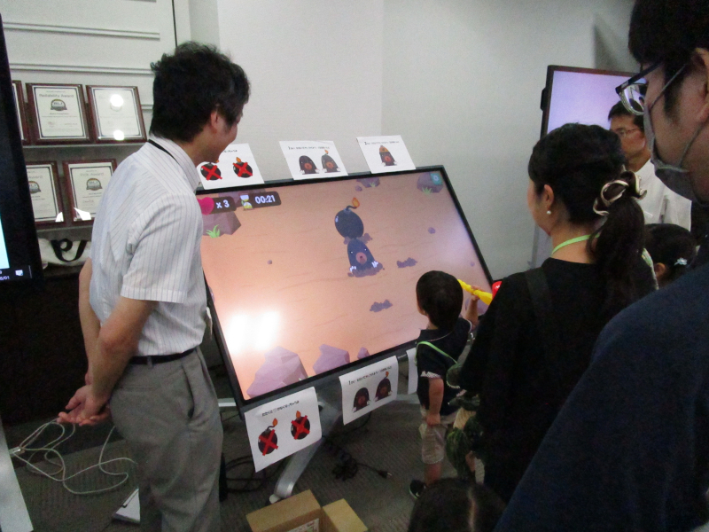 午前中の『SHARP製品ふれあいコーナー』では、「人感センサーを使用したゲーム」、「16面マルチディスプレイでのゲーム」「IWB※1でのモグラたたき」「工業用カメラを用いた間違い探し」「8Kカメラで新紙幣に隠された文字を見つける」など、子どもたちはもちろん、大人の方々にも楽しんでいただけました。