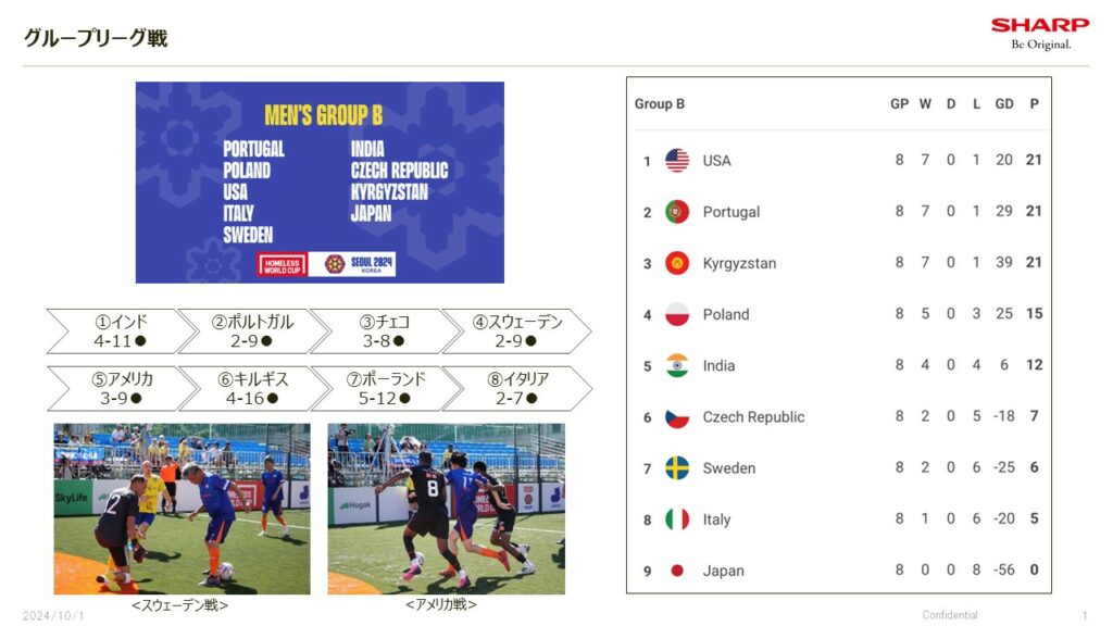 過去の日本代表は、世界のホームレスと比べてその定義は非常に狭く、他国と比べて平均年齢が非常に高いなかで、若年層が中心の世界の代表チームと戦っても全く勝負にならない散々な状態でした。今大会を通じて、その定義を世界基準に寄せていく方向性にチャレンジして挑んだ結果、“念願の1勝”を記録することができたことに、万感胸に迫る思いです。
