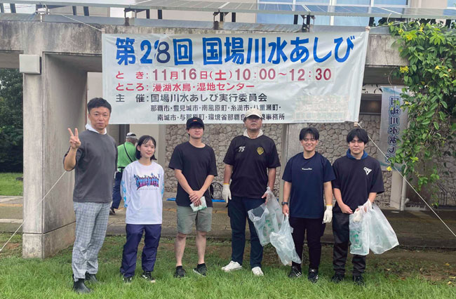 11月16日に開催されたラムサール条約湿地の漫湖および国場川河川敷・湿地帯内の清掃に、従業員9名が参加し、上流から流れてくるゴミを収集しました。