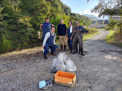 また、SGC事務局の5名が胴付き長靴を履き、河川内のゴミ拾い等 高瀬川の美化活動も行いました。