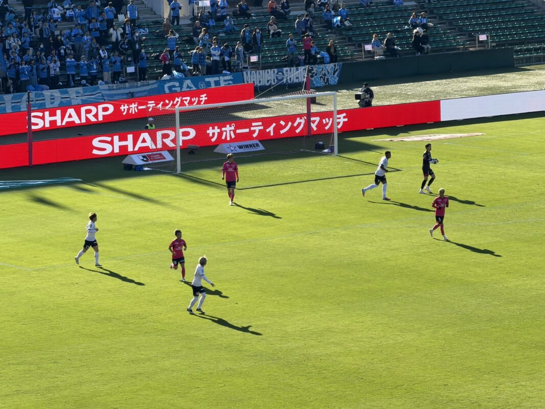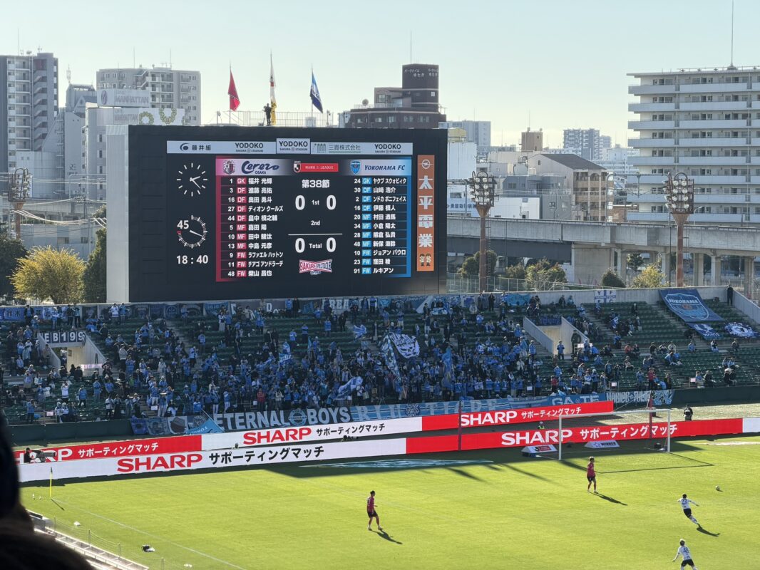 いよいよ試合開始。対戦相手は横浜FCです。前半から相手の猛攻を受け、2失点も、セレッソのディオン選手がコーナーキックからの見事な蹴り込みで1点を返します。後半もセレッソは果敢にゴールを目指しましたが、残念ながらこの日、勝利の桜吹雪は舞いませんでした。