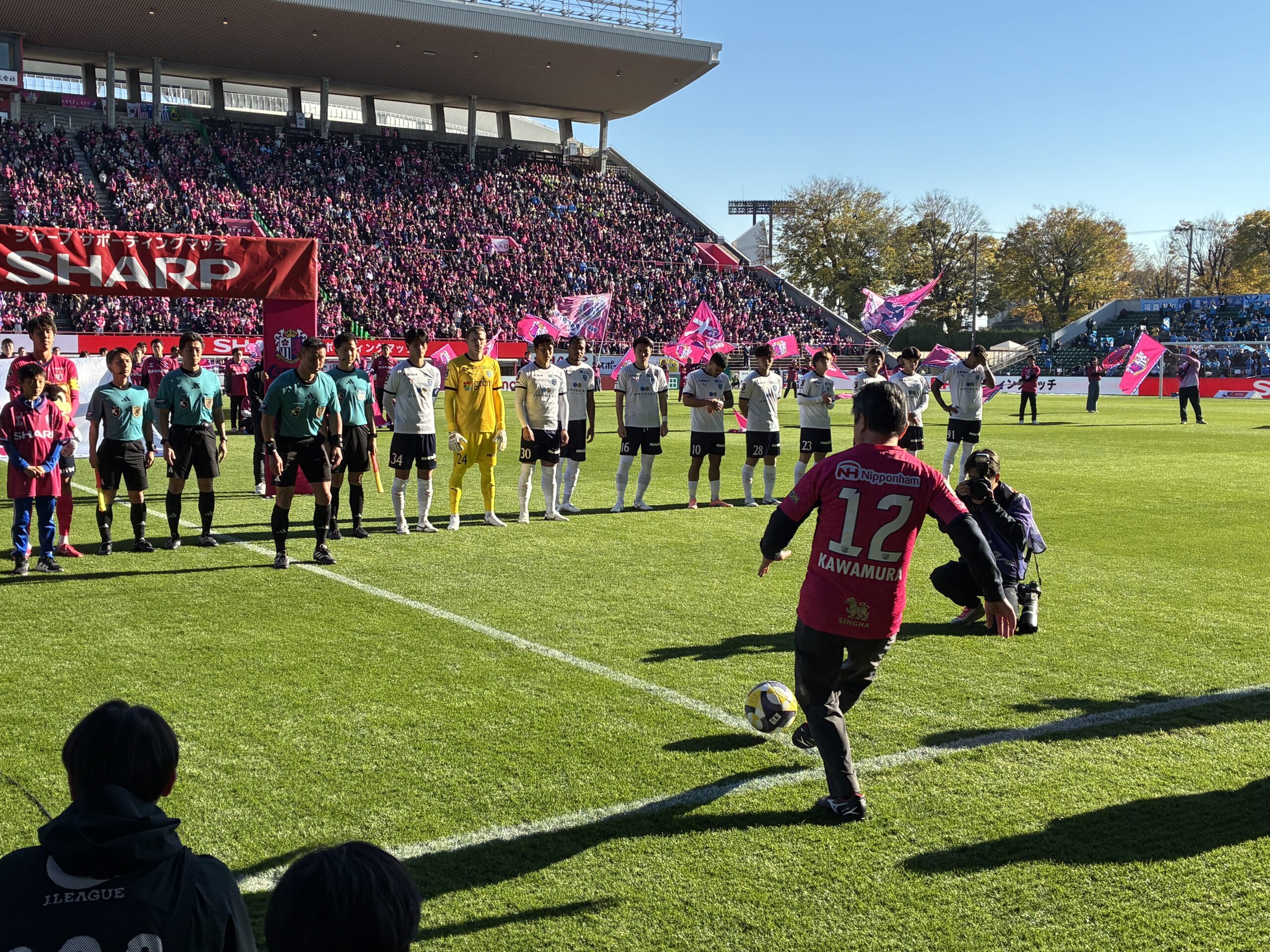 今日はこの場をお借りして、12月6日に行われたサッカーJ1セレッソ大阪「SHARPサポーティングマッチ」でのフラッグ掲揚セレモニーの様子をお伝えします。(写真はこやまんどが撮影したものと、セレッソ大阪公式カメラマンが撮影した美麗写真とでお送りいたします。)