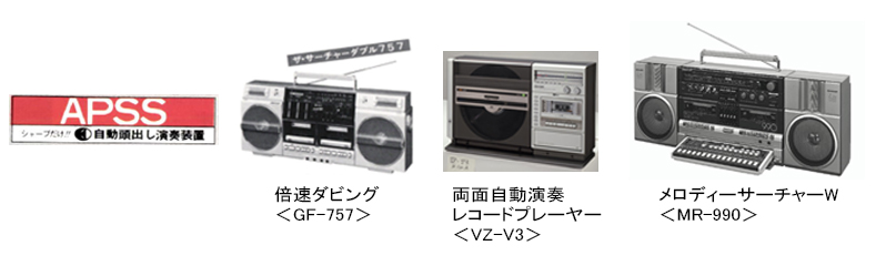 当時は、オーディオの全盛期で、シャープは「一発選曲(APSS)」「倍速ダビング」「両面自動演奏レコードプレーヤー」「メロディーサーチャー」など、独創的な技術・商品を他社に先駆け創出し、大手オーディオメーカーなどから一目置かれる存在でした。(ほんとに!)
