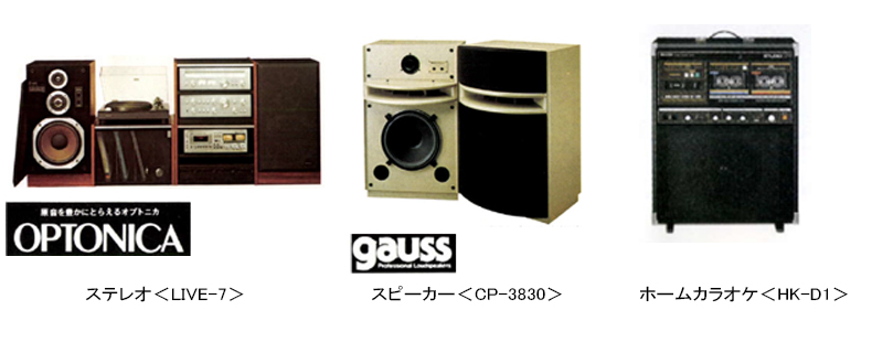 音響S事業本部ではそのほかにも、「ステレオ(OPTONICA)」「スピーカー(GAUSS)」「ホームカラオケ」など幅広く手掛けていました。
