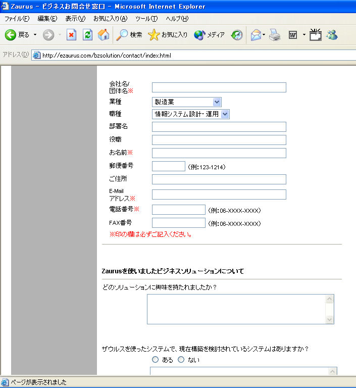 ■Zaurus法人向けビジネスソリューションホームページ