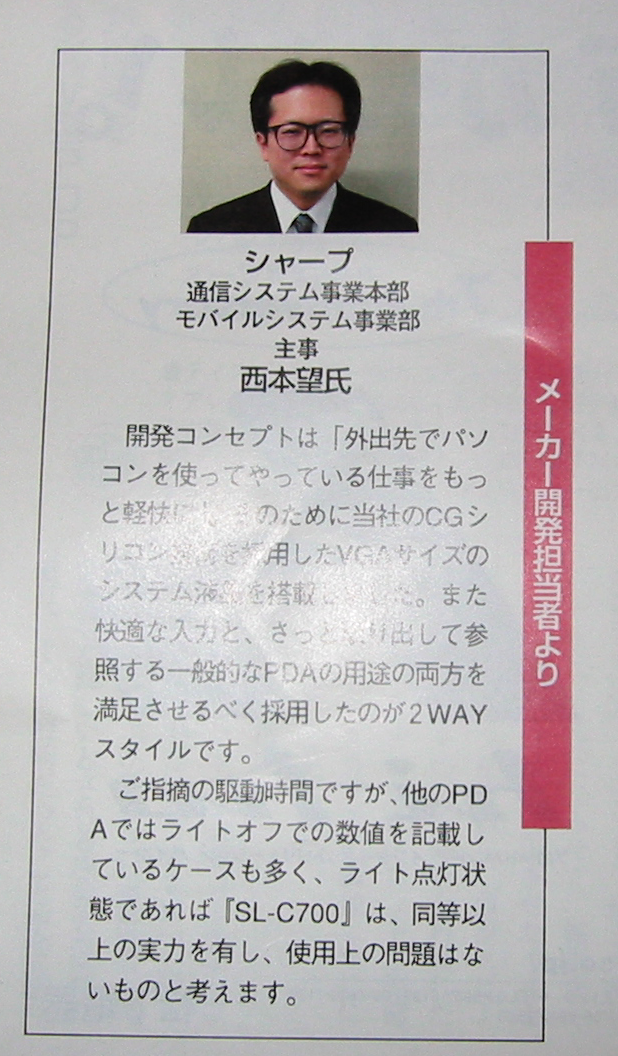 社外だけでなく、社内ですら時代はもうPalm OSやWindows CEだ、シャープ独自のZaurus OSでは勝負にならないとか言われてましたが、自分の目の黒い内はそんなものには絶対に負けねえ!と思ってました。ちなみに、この時点での国内での法人ソリューション採用数、比率共にPalm OSやWindows CEよりもZaurusの方が上だったと思います。