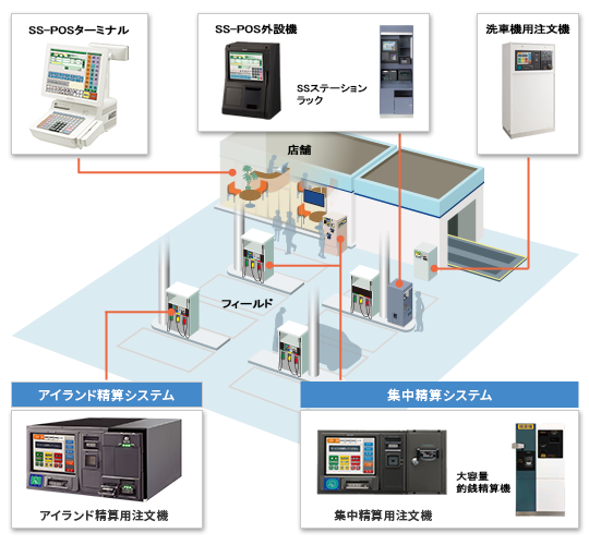 入社する前は知らなかったのですが、シャープで下記の図のようなシステムを導入しています。国内のシェアも30%を超えており、業界でもトップとなっています。いつも使っているガソリンスタンドが実は自社のシステムかもしれませんよ。