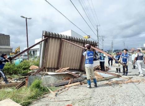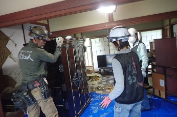 (ブルーシート貼り・床下の水出し・危険家屋からの貴重品取り出しetc 電動工具やハシゴ・専用掃除機などで作業)