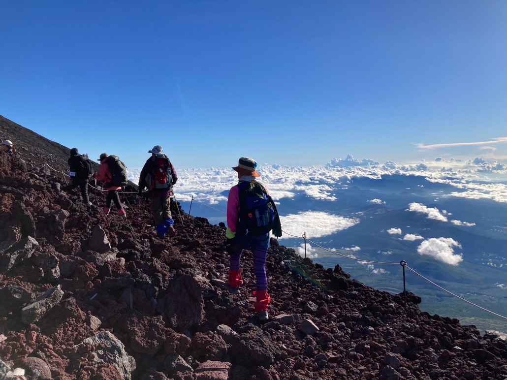 私自身も入社後に登山を始め、当時の配属先の先輩に山岳部へ誘っていただきました。最近では念願の富士山に登頂しました。富士山は遠くから眺めると美しいですが、実際に登ると少し足を踏み外せば命に関わるのではと思うほど緊張感があります。途中は、高山病で強い頭痛に悩まされ、痛み止めを飲みたくなるほどでしたが、病気の兆候を見逃さないために我慢し、歯を食いしばって遂に最高峰の剣ヶ峰まで登り切りました。そこでの景色と達成感は、他の何にも代えられないほど感動的でした。