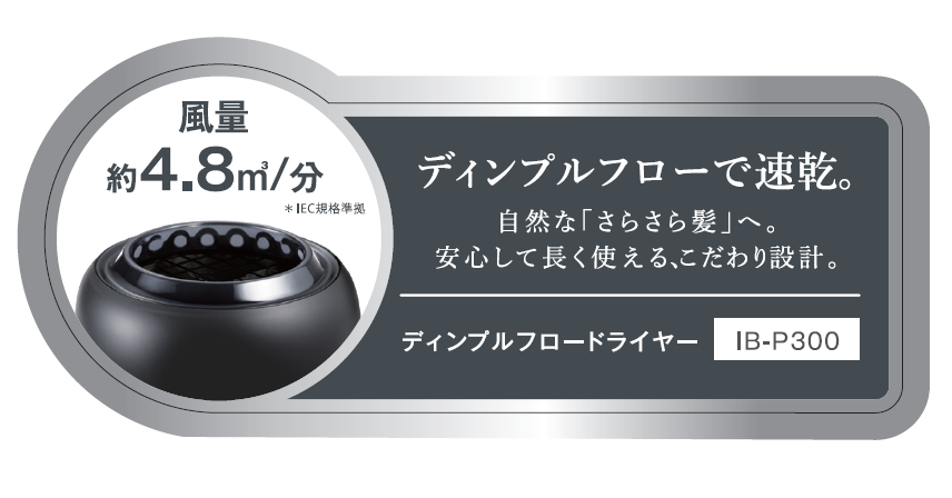 1番左がフラグシップのドライヤー<IB-WX902>です。毎日家で使っているのですが、乾く速さも、髪のさらさら感も、コンパクトさも、使いやすさも揃っている超バランス型ドライヤーで、最高に使いやすいドライヤーです。ただ、他社と比べるとお客様にはあまり知られていないギャップがとてももどかしくもあり…これからは企画のポジションとして出来ることを、試行錯誤していきたいと思います!