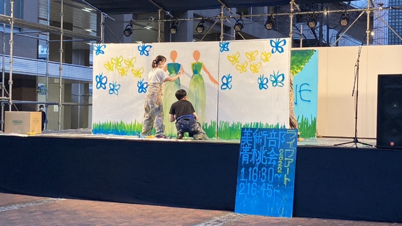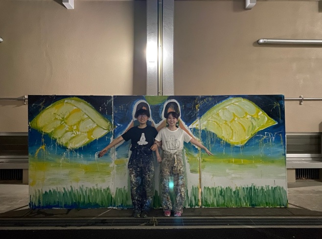 特に思い入れが強いのが大学祭でのライブペインティング。コロナが収まりだした2022年頃、一般のお客さんも学祭に入場可能となり、ならばお客さんが足を止めたくなるようなビッグイベントをやろうということで、有志たちでライブペインティングを決行しました。