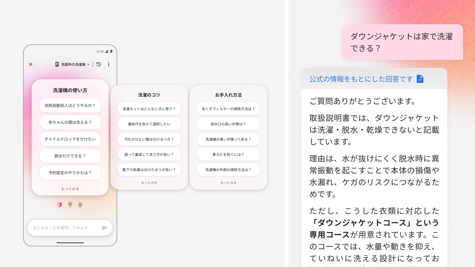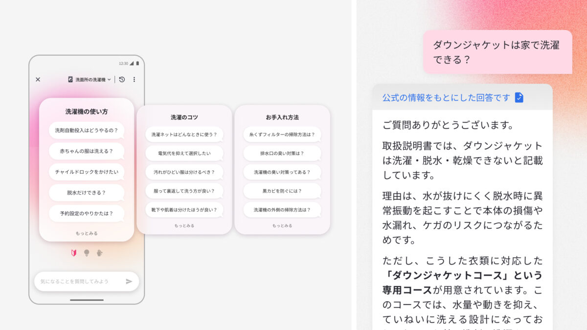 普段家電について相談したくなる場面は、故障やエラーに関する内容が多いと思いますが、生成AIは家電のことについて幅広く答えられるため、もっと能動的に製品の使い方について聞いてほしいという思いがありました。