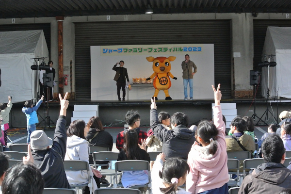 オープニングセレモニーで1回目のラッキー抽選会を行い、続いて大道芸人のステージライブ、空手の演武披露、地元のプロバスケットボールチーム「バンビシャス奈良」のマスコットキャラクター「シカッチェ」によるじゃんけん大会と、大盛り上がりで始まりました。
