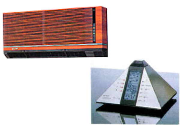 ルームエアコン「ライブコンディショナー」<AY-233FS他>のセンサー付リモコン「ライブステーション」です。 このリモコン、ピラミッド型をしており、当時は斬新で、温度、湿度などをキャッチするセンサーを内蔵していました。